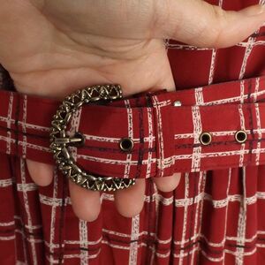 LESLIE FAY Midi Dress, XL, Dark Red Plaid, Short sleeve, Matching Belt, SS
