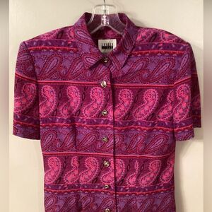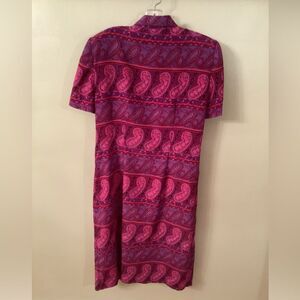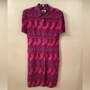 LESLIE FAY VINTAGE SZ 8 PINK PAISLEY BUTTON FRONT DRESS WITH SHOULDER PADS