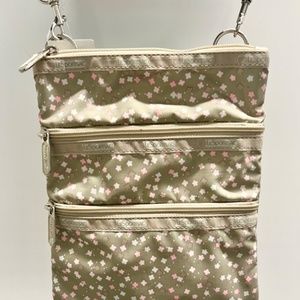 Convenient crossbody bag with multiple pockets. Excellent condition, cute flower print with light sage background.NWT.