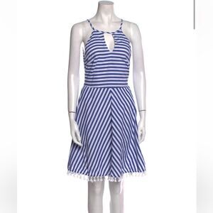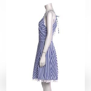 LETARTE High-Neck Striped Cotton Halter Dress w/ Tassel Hem