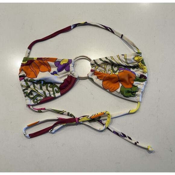 LETARTE Size 8 Floral Print Bikini Top Retro Halter Flower Power Swim Go Go