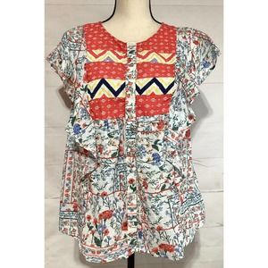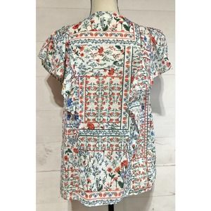 LETINEKE sz 6 floral flutter sleeve Swiss dot button down blouse top shirt
