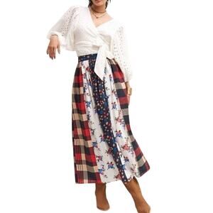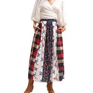 LETMEBE / Let Me Be by ANTHROPOLOGIE Maxi Skirt Colorway: white, red, black, floral, plaid