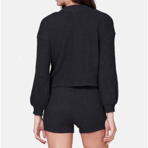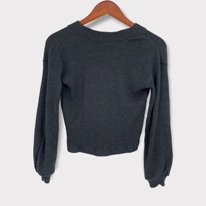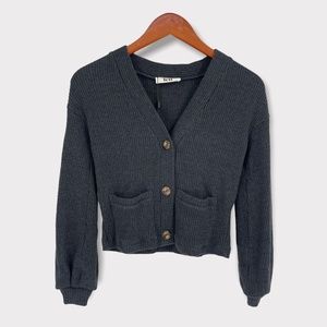 LETT Lisse Charcoal Gray Ribbed Balloon Sleeve Cardigan Sweater