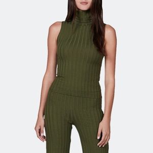 LETT Moss Green Orly Ribbed Turtle Neck Sleeveless Top Size XS