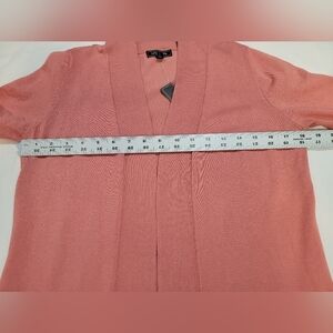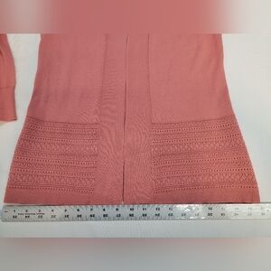 New With Tags Lety & Me Gabby Open Front Pointelle Cardigan/ Sweater Size Small, Coral Color, Stitch Fix, Longsleeve, rib knit cuffs, collar detail.