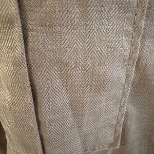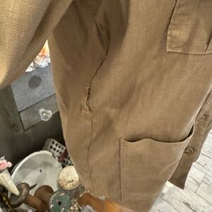 LEVEL 99 ANTHROPOLOGIE EMME SHACKET SHIRT JACKET | MILITARY UTILITY SAFARI | TAN LINEN HERRINGBONE BLEND FABRIC W/A BIT OF STRETCH | BUTTON FRONT | BELT TABS ON SIDE (NOTE: Missing Fabric Belt Tie @ Waist) | BELTS IN PHOTOS NOT INCLUDED! | GREAT PRE LOVED CONDITION | SIZE SMALL