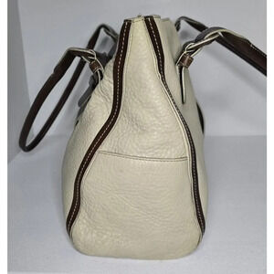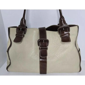 * The bag is made of creme heavy pebbled leather with tan leather smooth trim & silver hardware