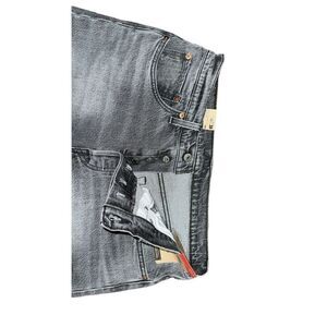 Elevate your denim game with these LEVI's 501 Original High Rise Straight Leg Button Fly jeans. The gray denim material and light wash create a versatile and stylish look that can be dressed up or down. The straight leg and high rise fit offer a flattering silhouette that is comfortable and practical for everyday wear.