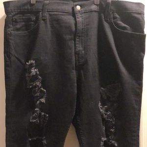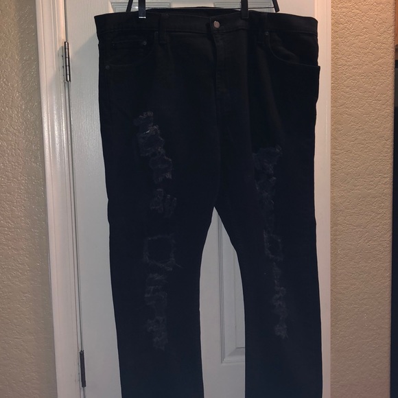 LEVI STRAUSS 512 DENIM JEANS IN BLACK DISTRESSED