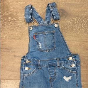 Super cute Levi’s distressed denim overalls. 😍