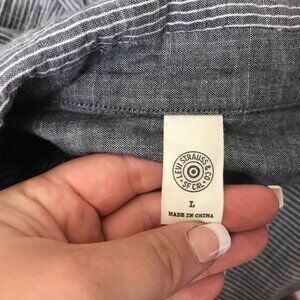 LEVI STRAUSS - WOMEN'S LARGE - BLUE/WHITE STRIPE LONG SLEEVE COLLARED DRESS