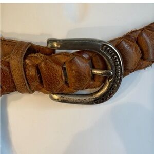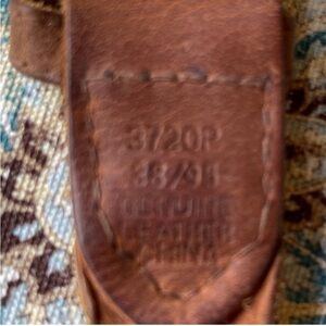 LEVI Strauss & Company Leather Belt tan pewter tone branded buckle S-XL 38"