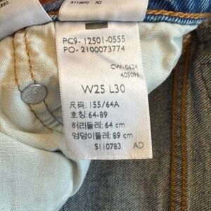 LEVI’S 501. Durable denim with subtle distressed detail. Mid-rise. 30” inseam.