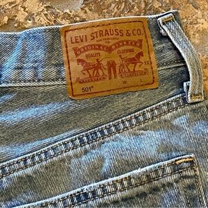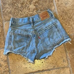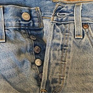 LEVI’S 501 Blue Buttoned Fly Raw Hem Jean Shorts Size 24