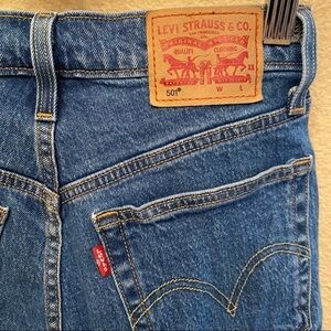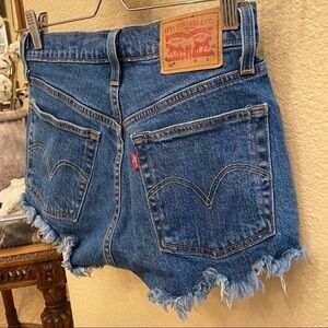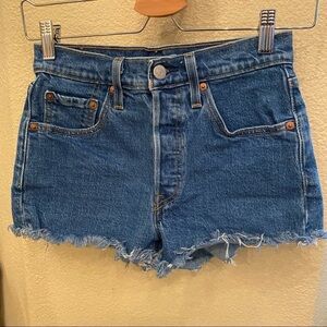 LEVI’S 501 Blue Raw Hem Buttoned Fly Jean Shorts Size 24
