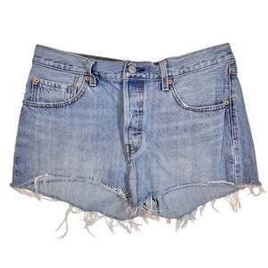 LEVIS 501 Button Fly Coastal Cowgirl Summer Grunge Festival Shorts Raw Hem 30" 1" Inseam