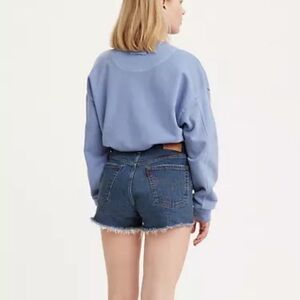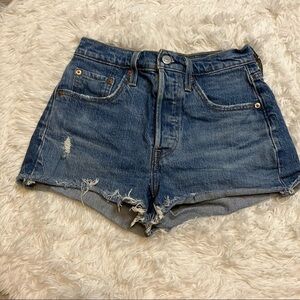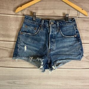 LEVI’S 501 Button Fly High Rise Cut Off Blue Jean Distressed Denim Shorts