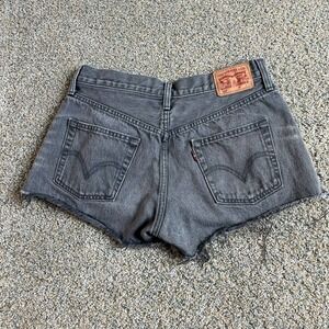LEVI'S 501 Cut Off Raw Hem Gray Denim Shorts Women's 29 Cotton Mid Rise Jorts