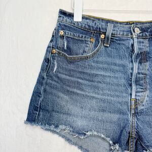 LEVIS 501 Denim Cut Off Jean Shorts Button Fly Worn In Dark Wash Distressed 30