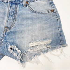 LEVI’S 501 Distressed Patched Cut off jean Denim shorts Size 25