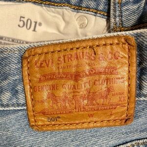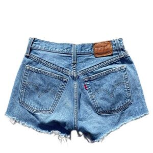 LEVI'S 501 High Rise Shorts Womens Cutoff Denim Blue Distressed Cotton