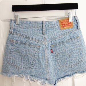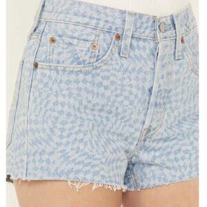 LEVI’S 501 Light Wash Harper Geo Laser Distressed Denim Button Fly Shorts – 27