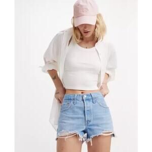 LEVI'S 501 Premium Denim Distressed High-Rise Cutoff Button Fly Shorts Size 30