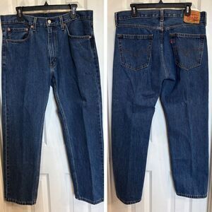 Levi’s 505 Regular Fit, Straight-leg Jeans in men’s size 36/30. Levi’s created this cut in 1967, and it’s one of their most popular. It sits at the natural waist with extra room in the thigh. They’re ankle length and sit evenly on the front and the back waistline. The waist measurement is 36" in circumference, the inseam is 30” and the rise is 12”. They’re made of 100% cotton. My husband does his laundry and is picky about his clothes. These are worn-in and soft. There’s just the right fading throughout. These jeans are in EUC and have many more years of wear. You will receive the exact pair shown in photos.
