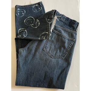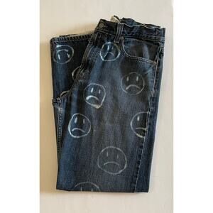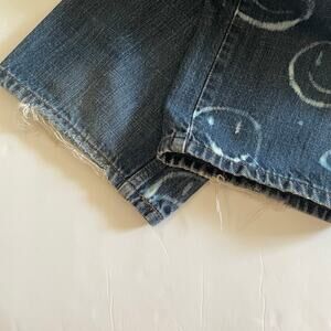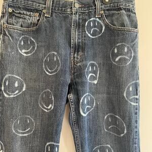 LEVI'S 505 Regular Fit Bleach Smiley Face Denim Jeans Frayed Hem Size 34/30