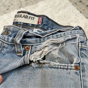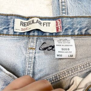LEVI'S 505 Regular Fit Straight Leg Light Wash Destroyed Denim Jeans 32x32