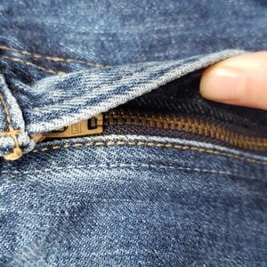 This is the 508 Regular Taper Fit denim from Levi's. Made from 100% cotton selvedge denim these jeans feature the best of both worlds, slightly loser at the waist and thigh with a taper as it goes down. These denim also feature a medium dark wash finish.