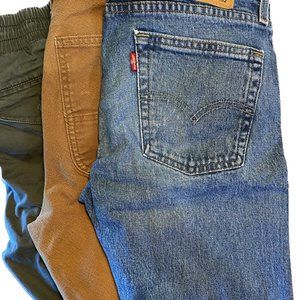 zip fly, 5-pocket styling, rivet reinforced pockets