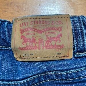 EUC Levi’s 511 Jeans feature a slim fit and whiskered finish for a modern look for little boys. Made from soft, stretchy denim for increased mobility.