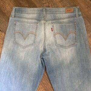 LEVI’S 524 TOO SUPERLOW LIGHT WASH SKINNY JEANS W/COLORED POCKET TOP STITCHING