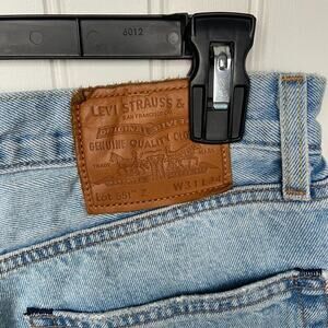 Elevate your denim collection with the Levi's 551Z Authentic Straight Phantom DX Destructed Hemp Jeans. Crafted with a unique blend of cottonized hemp denim, these jeans offer a comfortable, loose fit with a classic straight leg cut. The light blue wash and distressed detailing create a vintage-inspired look that's perfect for any season. Featuring a waist size of 31 inches and an inseam length of 34 inches, these jeans are designed for a regular fit and are machine washable for easy care. The 5-pocket design includes a convenient coin pocket, and the belt loops are ideal for securing your favorite suspenders. Whether you're out for a casual day or dressing up for a night out, these premium edition jeans are sure to be a go-to in your wardrobe.