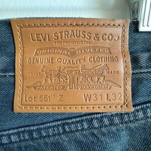 Details: Vintage levis 551Z in a faded dark blue denim wash with taperd legs, zipper & button fly, and 5 pockets. Classic addition to any wardrobe, excellent basic staple piece.