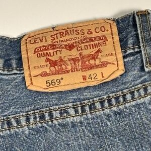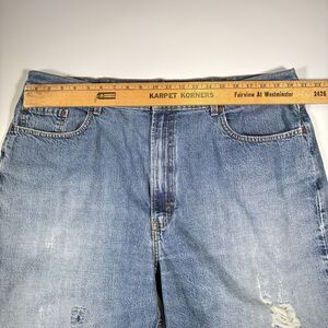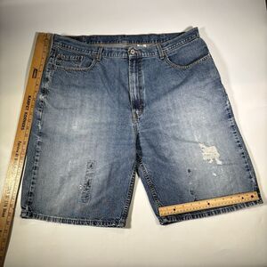 LEVI'S 569 Blue Denim Shorts Loose Straight Mens W42 Trashed Distressed Baggy Jean