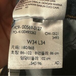 Labeled Size 34 x 34 - but inseam actual measurement is 32”. Some discoloration on the tan brand label on waistband. Some color transfer on inside of pockets. See photos. In otherwise great condition - washed & ironed & ready to wear! 100% Cotton - no stretch. Zip fly 5 pocket styling.