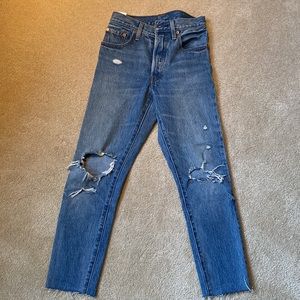 501 skinny // medium wash // worn and washed // cut hem