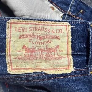 LEVIS 701 Big E Selvedge Denim Jeans Womens Size 28 LVC Rivets Capri 098