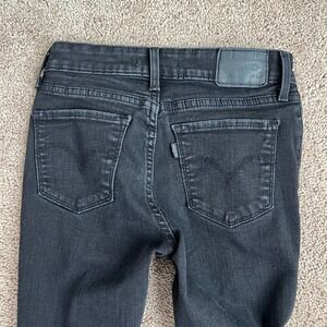 LEVI'S 711 Black Distressed Trashed Ripped Skinny Leg Mid Rise Stretch Jeans 26