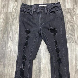 LEVI'S 711 Skinny Leg Mid Rise Stretch Black Denim Jeans Women's Size W 27 L 30