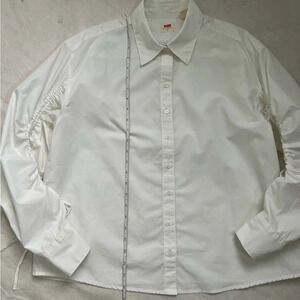 LEVI'S Alena Gathering long-sleeve Blouse White top size S 100% Cotton NWT