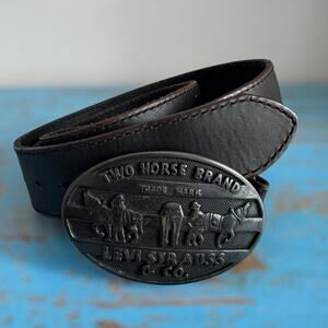 LEVI'S Belt Mens Large Brown Leather Oval Brass Pin Closure Buckle Western