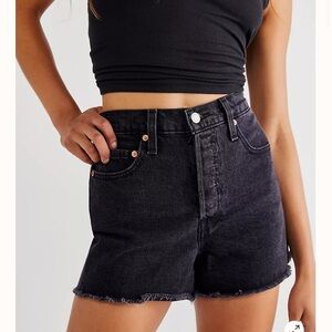 LEVI'S Premium Rigid Denim x FREE PEOPLE Black Distressed Ribcage Wide Leg Cutoff Denim Shorts