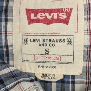 LEVI'S Blue Plaid Long Sleeve Pearl Snap Western Shirt; Men Size S