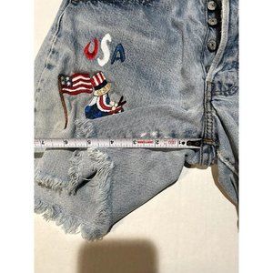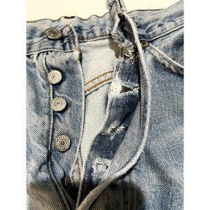 SECOND HOLE ON BUTTON UP AREA IS TORN AND TOP MAIN HOLE FOR BUTTON IS WIDE FROM TEARING SO BUTTONING IS A BIT LOSE, ALL INCLUDED IN PHOTOS