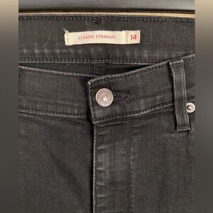 LEVIS Classic Straight Womens Jeans Black Denim Soft Stretch Mid Rise Dark Sz 14