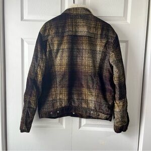 LEVIS Corduroy Sherpa Trucker Jacket Textured Plaid Tinsel Brown Warm Vtg Medium